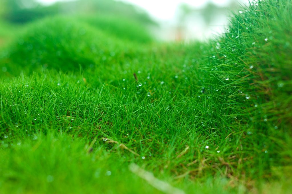 A folha da Grama Coreana tem uma textura muito suave e é bem fina, ela forma uma camada densa de grama verde escura.